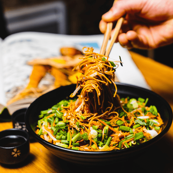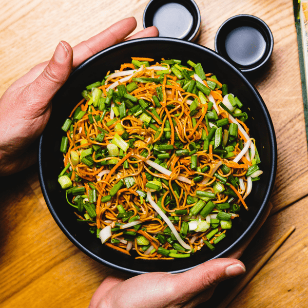 🍜 Nouilles sautées, 🥗 Légumes sautés , ⚪️ Soja, 🥕 Carottes, 🌿 Ciboulette, 🍳 Oeuf brouillé, Sauce Mi Prat